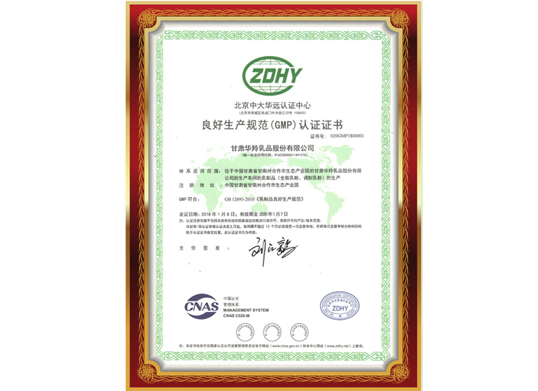 良好生產(chǎn)規(guī)范(GMP)認(rèn)證證書