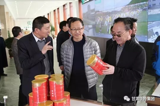 2017年4月11日下午,省工信委副主任高東生、規劃發展處處長陶英平、技術創新處處長郭永清、消費品產業處主任馬培柱、循環經濟處副處長吳國振一行蒞臨華羚乳品集團公司開展工作調研。集團監事會主席敏福祥陪同調研。調研組一行詳細參觀了展示大廳和生產車間后,在公司二樓會議室召開了由甘南州相關企業參加的工作座談會,會議由州經信委主任楊昌德主持。會上,敏福祥向調研組匯報了公司經營情況和企業未來的發展目標。省工信委調研組領導通過參觀和聽取匯報對企業的發展給予了高度評價。