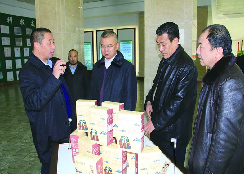甘南州人大常委會副主任才讓當智(右二),甘南州人民政府副州長趙四輩(左二)在集團董事長敏文祥(左一)的陪同下視察華羚公司