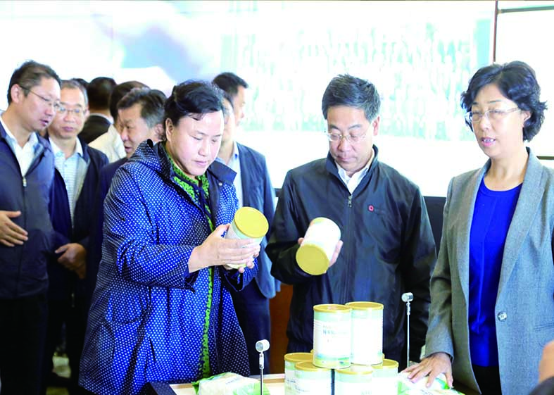 甘南州委副書記扎西草(左一),甘南州委常委、政法委書記宋占文(中),合作市委副書記、市長周梅(右一)視察華羚公司
