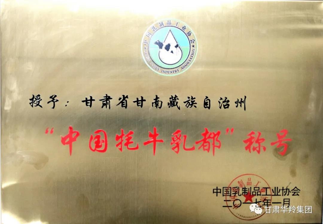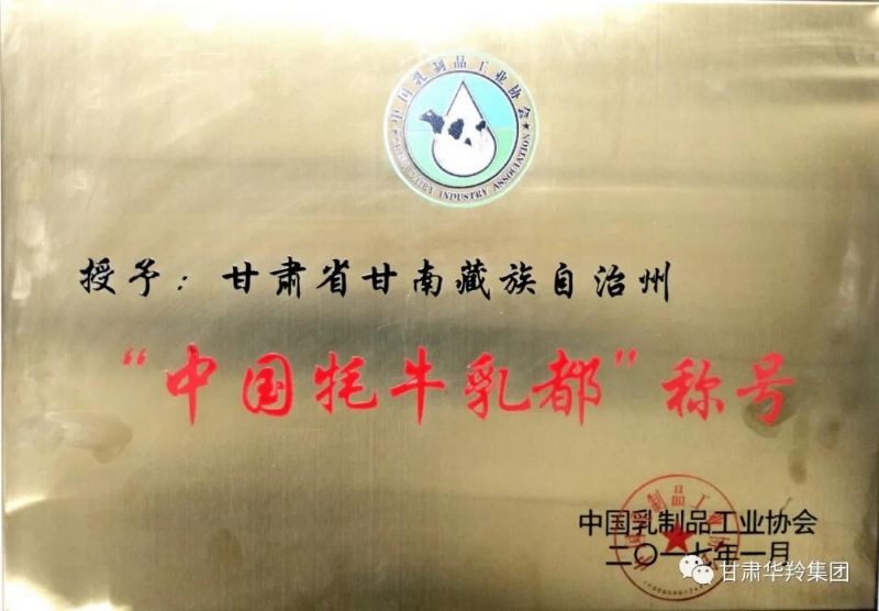 2017年1月,在甘南藏族自治州人民政府、甘南州工信局和甘肅華羚乳品集團(tuán)在內(nèi)的多方積極努力下,在中國(guó)乳制品工業(yè)協(xié)會(huì)的關(guān)心指導(dǎo)下,甘南藏族自治州榮獲了“中國(guó)牦牛乳都”榮譽(yù)稱(chēng)號(hào)。